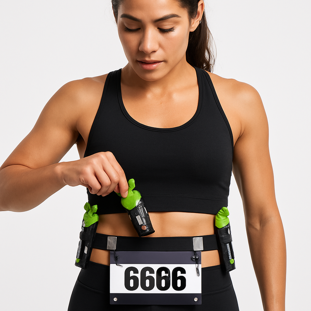 O cinto possui suportes para carregar seis géis de forma prática e segura.